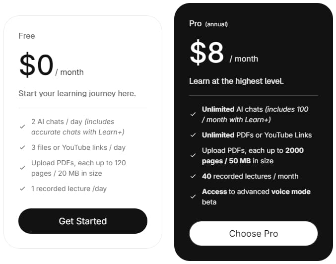 - Up to 3 PDF uploads or YouTube links daily