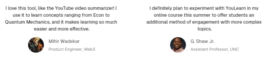 I initially thought $8/month seemed steep, but considering I was paying for separate tools for video summarization and flashcards, it actually saved me money to consolidate everything in YouLearn.