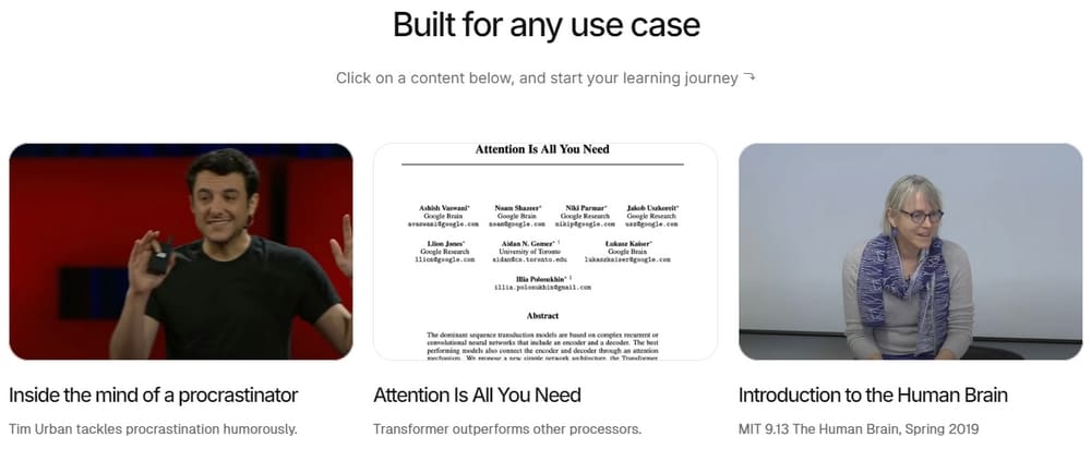 The platform breaks content down into logical sections, making it easier to navigate through long materials. For YouTube videos, the transcript extraction is especially helpful – I could search for specific topics mentioned in hour-long videos.